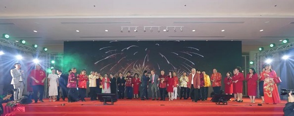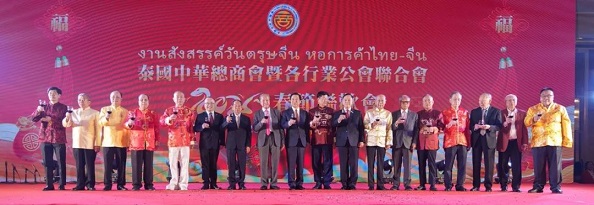 在热烈的掌声中,中国驻泰使馆吴志武公使、潘瑾公参受邀上台,与泰国劳工部前部长阿仑·盛信缴警上将、泰国中华总商会主席林楚钦、永远荣誉主席刘锦庭、陈振治、泰国潮州会馆主席徐惠深、泰国中国和平统一促进总会会长王志民,以及泰国中华总商会副主席李桂雄、陈锡源、何克家、蒋应初、刘秉青、萧汉铭、欧先梓、刘汉城等主要嘉宾共同举杯,喜迎新春,为新一年的繁荣与发展祝酒。大家纷纷表示,中泰友谊源远流长,在建交50周年之际,更应携手并进,共创美好未来。 |